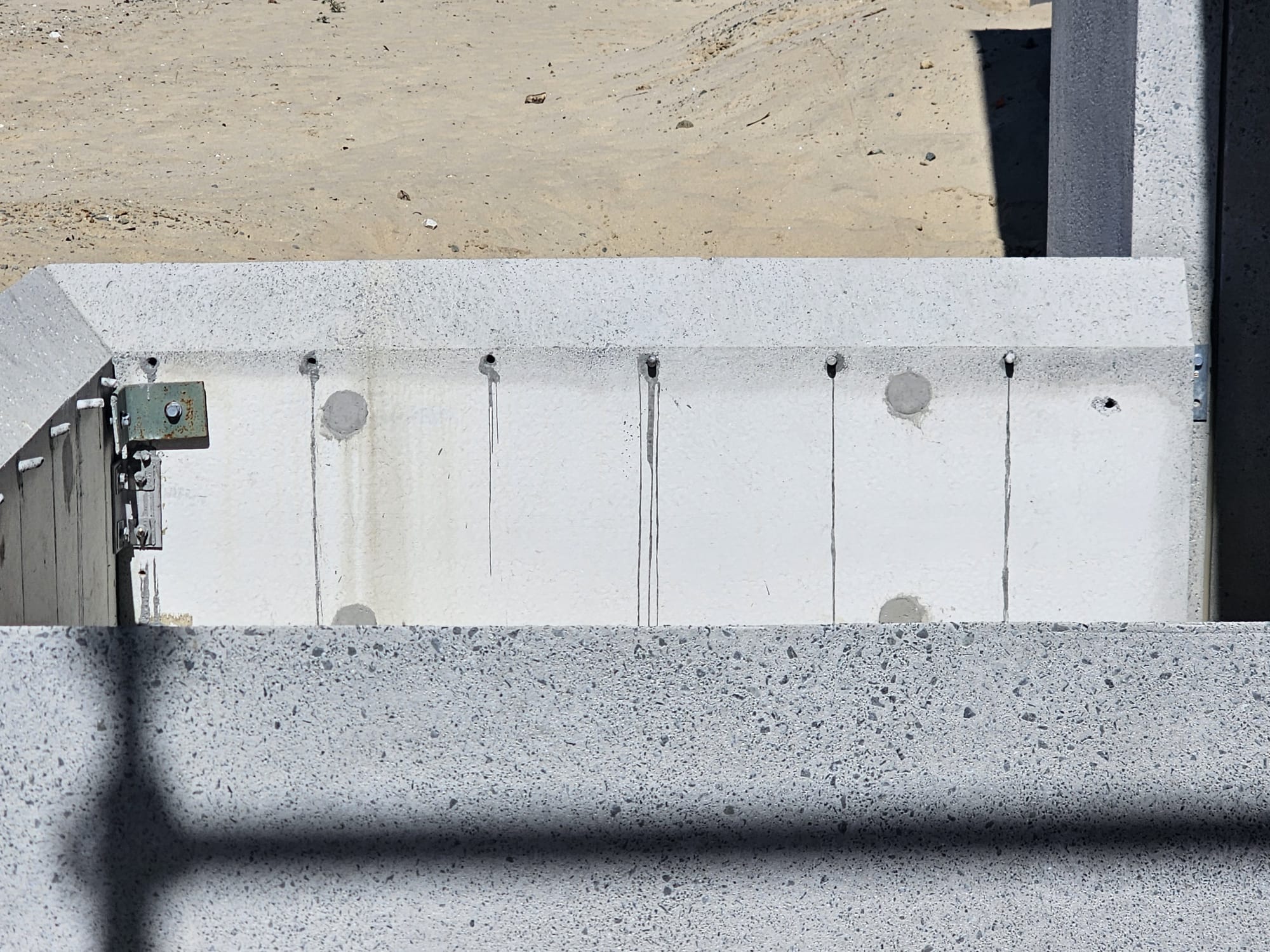 A common example is the grouted duct connection, where starter bars from one precast element insert into ducts cast into another element and the ducts are then pumped full of grout after assembly. If that grout fill is incomplete or voided, you can end up with water tracking through the connection zone.