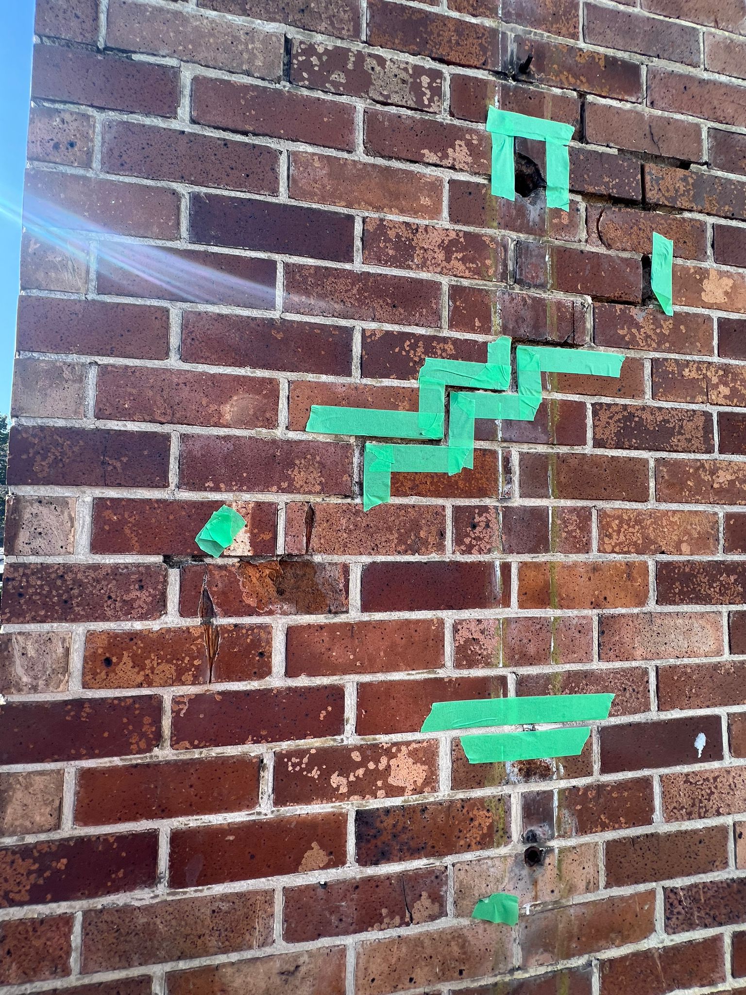 - Stepped cracks that reappear after repointing (because the wall is still moving)